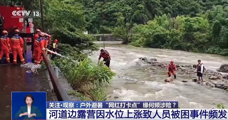 浙江寧波市消防救援支隊(duì)余盈:游客在水邊玩耍,對上游山洪的下降往往是聽不清、看不見的。提醒大家汛期不要在河道邊或者是干涸的河床上搭建營地,應(yīng)該盡量選擇地勢高、地面平坦堅(jiān)固、背風(fēng)的地方扎營。