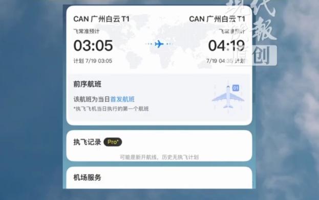 民航業(yè)內(nèi)人士表示:其實經(jīng)常有這種試飛航班。不過近期有臺風來臨,7月19日白云機場天氣不佳,平臺“賞月航班”的信息標注有點奇怪。