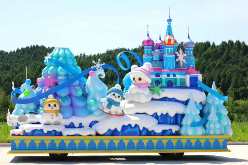 “冰雪綺夢花車”,巧妙融合了伊春作為“紅松故鄉(xiāng)”的生態(tài)特色與對俄開放的地緣優(yōu)勢。銀裝素裹的紅松林展現(xiàn)北國冰雪魅力,俄羅斯城堡造型呼應(yīng)伊春作為中俄邊境城市的開放姿態(tài)。雪人點綴其間營造歡樂氛圍,底部藍(lán)色水系裝飾象征黑龍江流域的聯(lián)通作用;ㄜ囃ㄟ^冰雪童話場景,既展示了伊春冬季旅游的獨特吸引力,更傳遞出“以冰雪為媒,促開放合作”的發(fā)展理念,生動詮釋了伊春立足生態(tài)優(yōu)勢、深化對外合作、推動高質(zhì)量發(fā)展的戰(zhàn)略方向,誠邀八方賓客共赴冰雪之約、共享開放機遇。