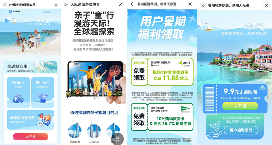 今年夏天,天際通為計(jì)劃出境游的用戶特別推出了“全球隨心用”活動(dòng),境外流量9.9元包天,每天有5GB高速流量,活動(dòng)覆蓋港澳、新馬泰、日韓、歐洲、澳大利亞、美國(guó)(本土地區(qū))等50個(gè)國(guó)家地區(qū),讓境外出行更方便,更劃算。天際通還為出行亞洲、歐洲的用戶提供了多地旅游優(yōu)惠權(quán)益,涵蓋機(jī)票酒店、旅游景點(diǎn)、吃喝玩樂等各個(gè)方面,想必這也是很多小紅書用戶在#鴻一點(diǎn)更夏天#中瘋狂安利的原因之一。