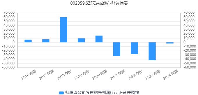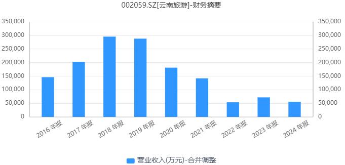 雖然擁有稀缺的旅游資源,但是在業(yè)績上,云南旅游卻沒有將優(yōu)勢轉(zhuǎn)化為利潤。營收方面,公司在2018年達到高點后就快速下滑,這幾年營收規(guī)模縮水較嚴重,2024年公司的營收5.57億元,僅相當于2018年營收的18%左右。