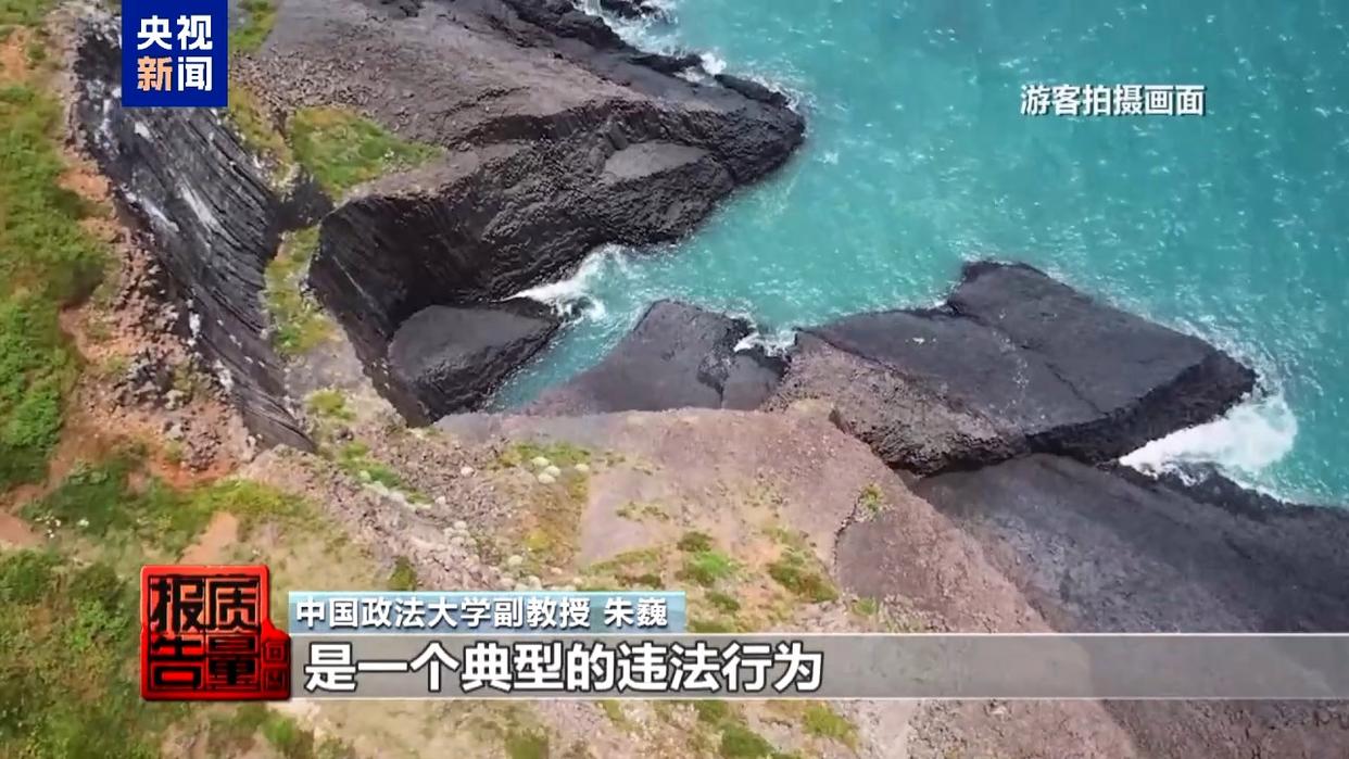 中國地質(zhì)大學(xué)(北京)地球科學(xué)與資源學(xué)院教授 張緒教:游客上島以后,他們攀爬到柱狀節(jié)理上邊,對柱狀玄武巖造成破壞,這種物理破壞是不可逆的。