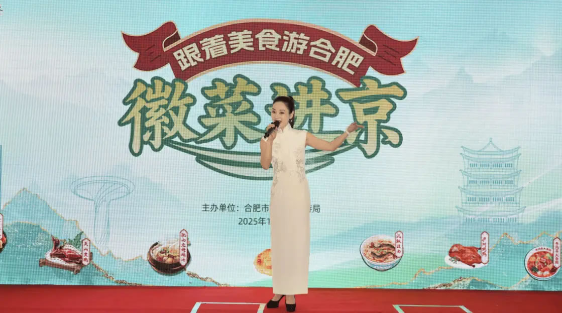 18:30,活動正式拉開帷幕,美食宣傳片帶觀眾在線“品嘗”徽味的獨特魅力和徽廚的匠心故事;現(xiàn)場演繹的黃梅戲唱腔婉轉,將江淮柔情融入京華夜色;合肥市文旅局代表登臺推介,帶眾人感受合肥這座“科里科氣”與“文里文氣”并存的城市魅力。