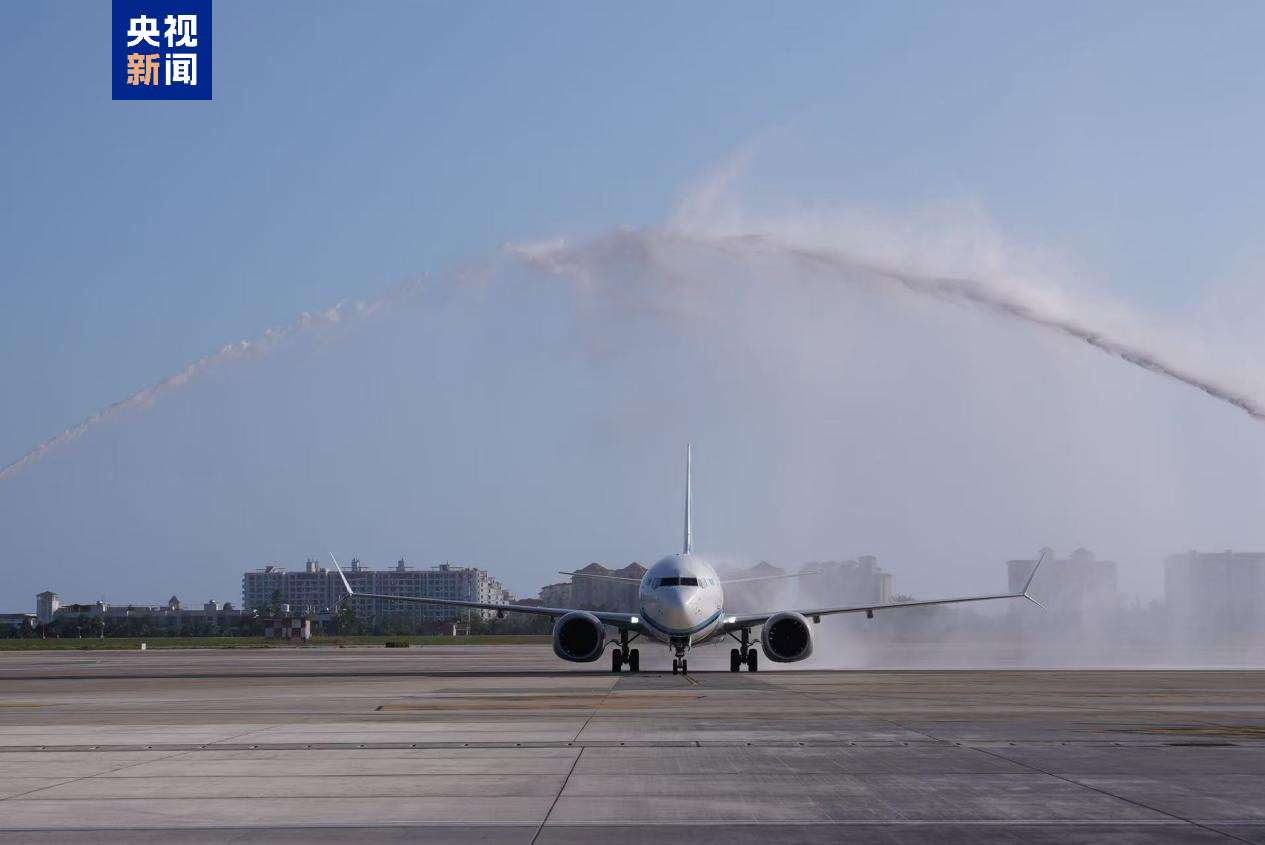 在海南自由貿(mào)易港封關(guān)運作的關(guān)鍵節(jié)點,12月22日16時6分,哈薩克斯坦斯卡特航空執(zhí)飛的“三亞-布拉格”航線DV482次航班平穩(wěn)降落在三亞鳳凰國際機場,機坪兩側(cè)的消防車噴射出弧形水柱,在跑道上空交匯成一道壯觀的“水門”,航班穿門而過。本次航班搭載的115名來自捷克的旅客順利入境(機組9人,總計124人),這是海南自貿(mào)港首條第七航權(quán)客運航線迎來的首批旅客。