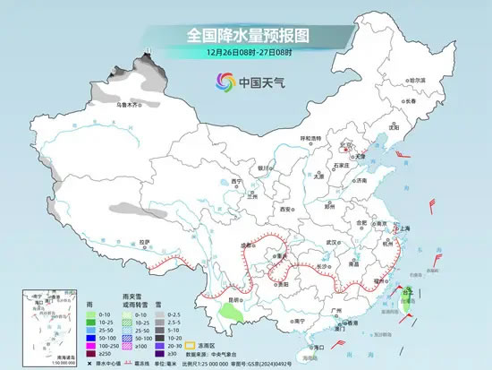 昨天開始,全國的降水開始逐漸減少。昨天,東北地區(qū)的降雪基本結束,南方仍有大范圍陰雨。監(jiān)測顯示,24日8時至25日6時,新疆北部、內蒙古東部、東北地區(qū)及山東半島等地部分地區(qū)出現(xiàn)雨夾雪或小雪;廣西北部至浙江北部一帶等地部分地區(qū)出現(xiàn)中雨或大雨。