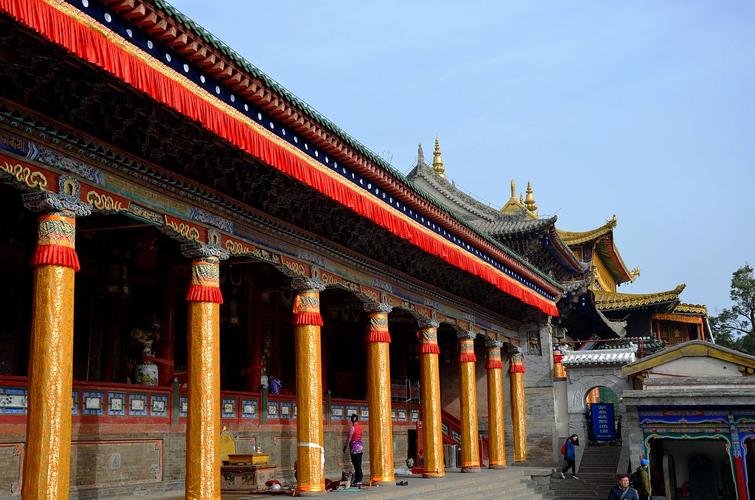 塔爾寺殿宇高低錯落,交相輝映,氣勢壯觀。位于寺中心的大金瓦殿,綠墻金瓦,燦爛輝煌,是該寺的主建筑,它與小金瓦殿(護法神殿)、大經堂、彌勒殿、釋迦殿、依詁殿、文殊菩薩殿、大拉讓宮(吉祥宮)、四大經院(顯宗經院、密宗經院、醫(yī)明經院、十輪經院)和酥油花院、跳神舞院、活佛府邸、如來八塔、菩提塔、過門塔、時輪塔、僧舍等建筑形成了錯落有致、布局嚴謹、風格獨特、集漢藏技術于一體的建筑群。
