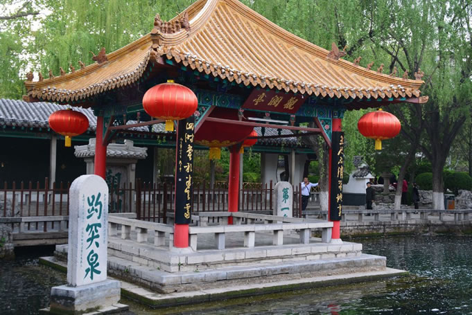 趵突泉的南大門橫匾“趵突泉”藍(lán)底金字,是清朝乾隆帝的御筆,有人譽為中國園林“第一門”。