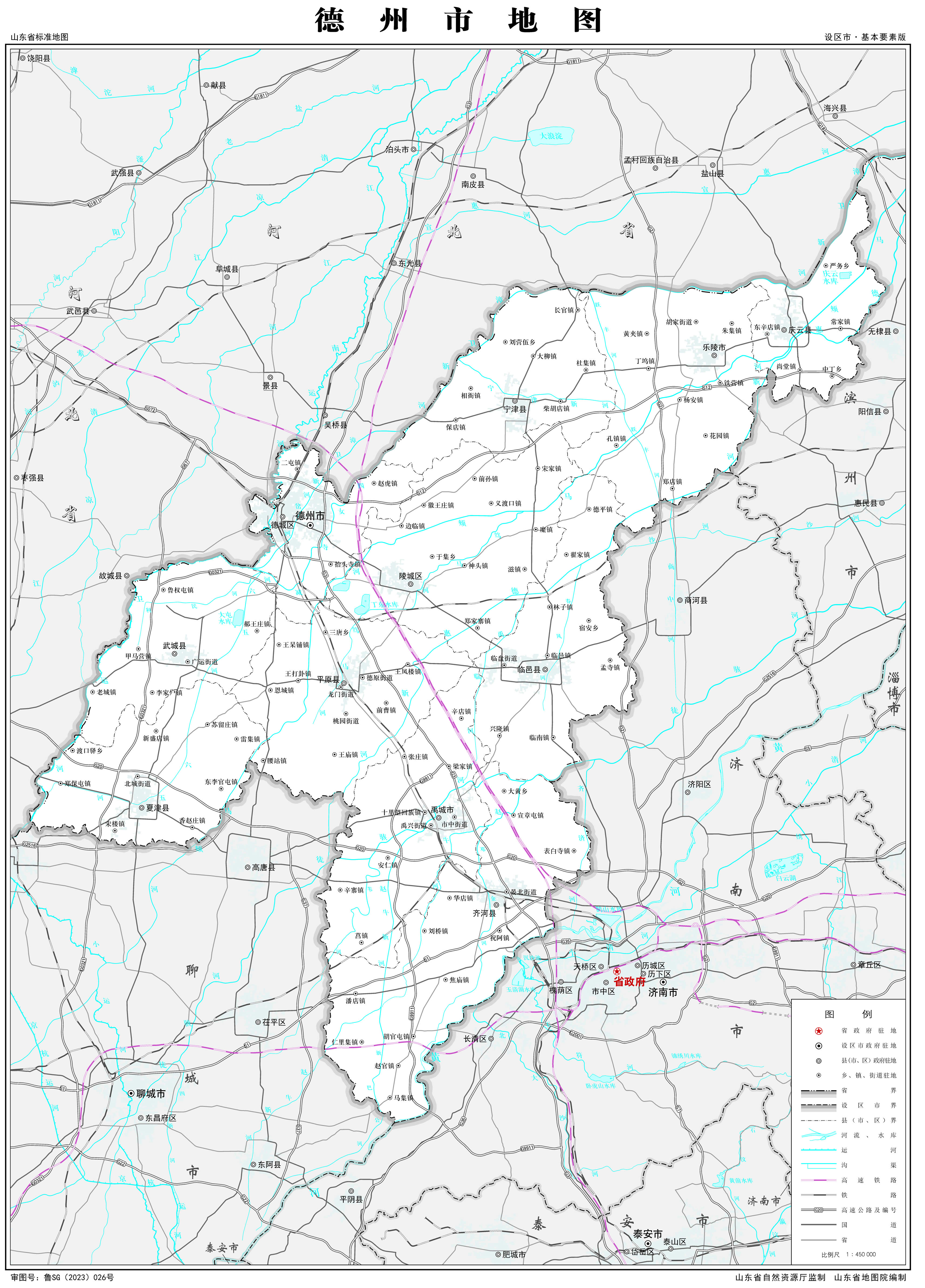 德州市轄2個市轄區(qū)、7個縣,代管2個縣級市: