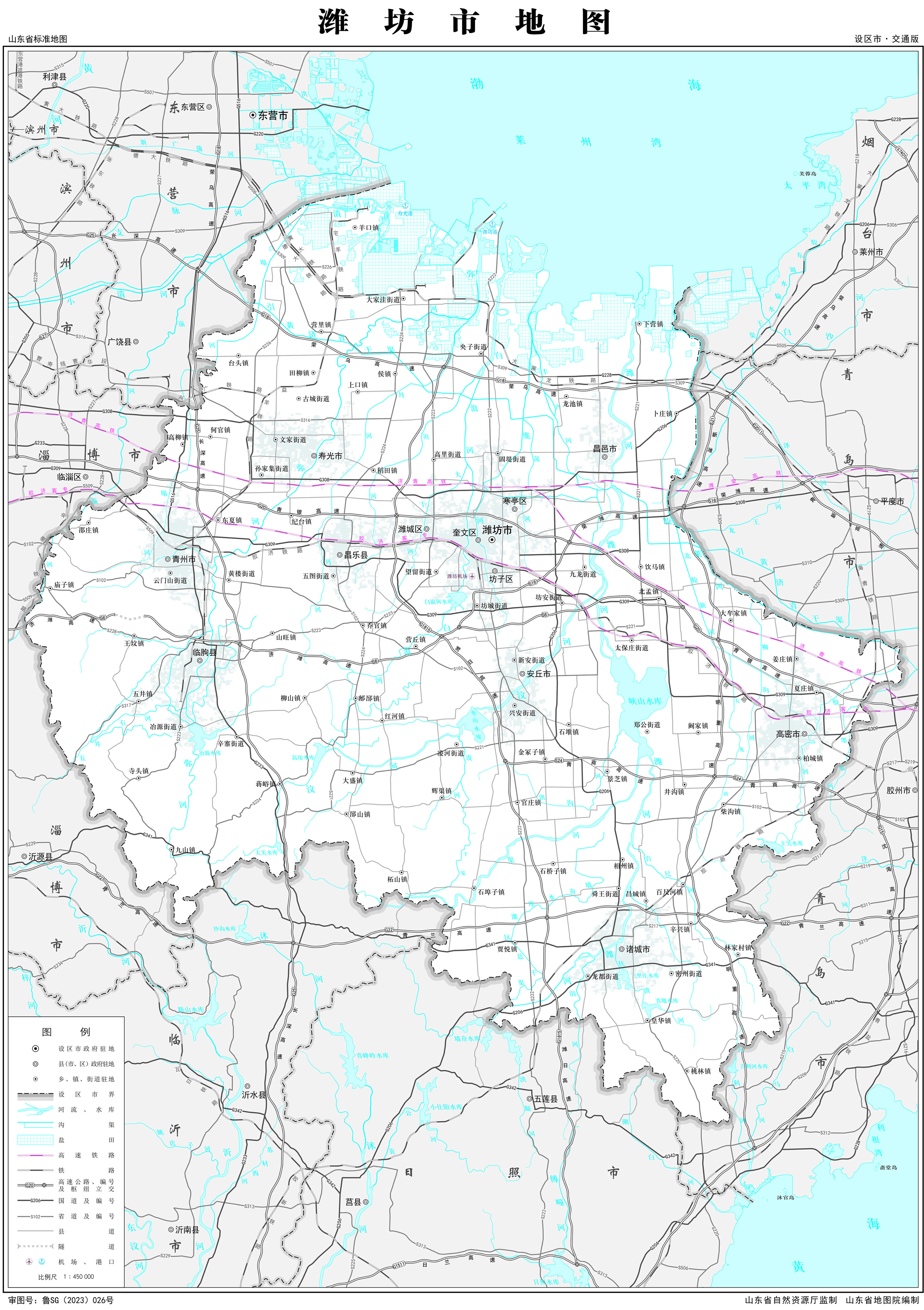 高速公路:G20青銀高速公路、G18榮烏高速公路、G25長(zhǎng)深高速公路、G22青蘭高速公路、S16榮濰高速公路、S21新濰高速公路、G1815濰日高速公路