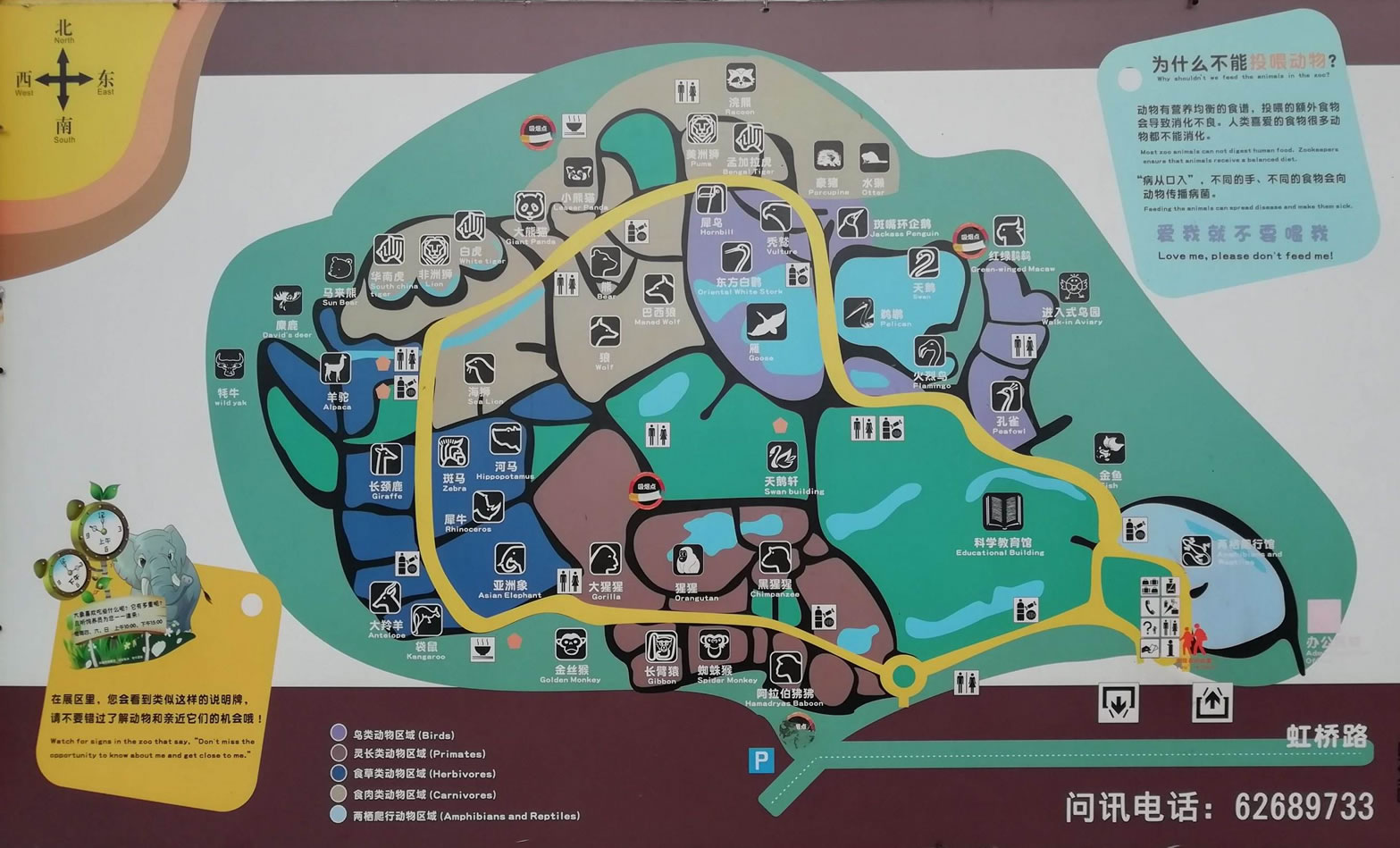 上海動(dòng)物園鸚鵡展區(qū)于2000年建成,位于大轉(zhuǎn)盤下,是用木制的圍欄圈起來,面積大約有100平方米。設(shè)計(jì)建造時(shí),利用了周圍的自然環(huán)境,特別是高大、挺拔的大樹,可以為鳥類遮蔭,充分體現(xiàn)了人、動(dòng)物、自然三者的有機(jī)結(jié)合。由于坐落在主干道旁,游客從旁邊經(jīng)過時(shí),就會(huì)被這些鳥類吸引過來。