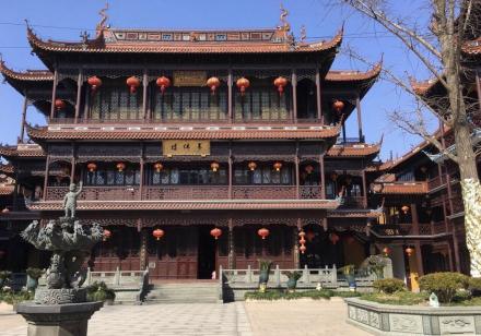 位于奉城鎮(zhèn),始建于明代,已有600多年歷史。萬佛閣的建筑亦有特色,依城傍水,曾有據(jù)堞面山枕流之稱;尤其后法堂樓閣建于古城墻之上,別具一格。大殿的鉗狀套式梁木結(jié)構(gòu),鑲接嚴密,渾然一體,堪稱古建筑一絕。1989年6月經(jīng)奉賢縣人民政府批準恢復開放。十幾年來,在上海市佛教協(xié)會支持下和新量師太的主持下,重修大殿山門、法堂樓閣,新建頭門回廊。佛像金身,寶鼎壯觀。明真禪法師為頭門、大殿題名。