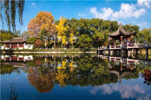 戲鵝池景區(qū)位于古猗園的中心地帶,戲鵝池因池內(nèi)有白鵝成群而得名。西邊建有明代為紀念"白鶴南翔"而建的“白鶴亭”。