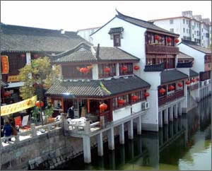 七寶老街改造歷時兩年多,現(xiàn)已完成一、二期建設(shè)任務(wù)。第一期,修繕蒲匯塘橋和南北一條街,辟建鐘樓和塘橋兩處休閑廣場。第二期,新建蒲匯塘水閣和修復相應(yīng)的上塘房,重建東西兩座石橋、蒲匯碼頭和七寶校場,恢復典當街,建造張充仁紀念館等。主事者重視古鎮(zhèn)修復改造中的文化表現(xiàn),在世人面前展現(xiàn)的是一條保留明清建筑特色的商業(yè)文化街,同時兼有地方文化內(nèi)涵的歷史老街。作為閔行區(qū)唯一還保存著古樸建筑風貌的七寶古鎮(zhèn),現(xiàn)在成了游人們訪舊懷古之勝地。不然,享有盛名的七寶老酒去哪里聞?在以餐飲小吃為主的南大街上,返璞歸真的酒坊還在,七寶老酒的生產(chǎn)全過程一一展示于人。傳統(tǒng)的七寶羊肉,白切、紅燒、熱煲,各種口味應(yīng)有盡有,連外來的“喬家柵”也看中此間古意而入駐老街。