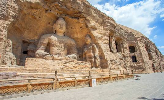 云岡石窟,原名靈巖寺、石佛寺。位于山西省大同市西郊17公里處的武州山南麓,是中國(guó)著名的石窟群之一。云岡石窟的開鑿始于北魏時(shí)期,北魏皇始三年(398年),道武帝拓跋珪將都城從盛樂(今和林格爾縣)遷至平城(今大同市),武州山成為盛樂與平城之間的交通要沖。文成帝拓跋濬即位后,令沙門統(tǒng)曇曜主持復(fù)法大業(yè)。在文成帝的支持下,曇曜選擇了鐘靈毓秀的武州山,"鑿山石壁,開窟五所,鐫建佛像各一,高者七十尺,次六十尺,雕飾奇?zhèn)ィ谟谝皇?quot;。云岡的大部分洞窟在孝文帝元宏遷都洛陽前完工,但是造像工程則一直延續(xù)到正光年間(520~525年)。云岡石窟的開鑿歷時(shí)約150年,歷經(jīng)北魏、東魏、西魏、北齊、隋、唐等朝代,現(xiàn)存主要洞窟45個(gè),大小窟龕252個(gè),石雕造像59000余尊,是中國(guó)石窟藝術(shù)寶庫中的瑰寶。