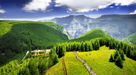 紅崖峽谷索道于養(yǎng)生度假區(qū)和高山草甸區(qū)之間,從紅崖底養(yǎng)生山莊直抵百花坡草甸,垂直高差500米。游客在行進(jìn)過(guò)程中可從空中不斷變化的角度俯瞰位于海拔2000米以上壯觀的針葉林景觀以及遼闊的高山草甸景觀。