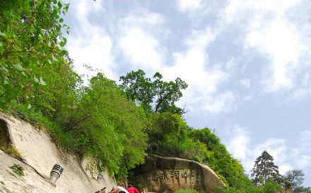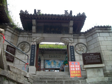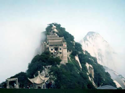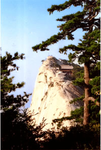“通天亭”,因和山頂金鎖關(guān)通天門遙遙相對(duì),所以叫“通天亭”,從這兒出玉泉院,“自古華山一條路”就從大家腳下開始沿伸,全長(zhǎng)25華里,共有9567個(gè)臺(tái)階,沿途各位可以看到迷人的風(fēng)光山色,誘人的驚險(xiǎn)神道。