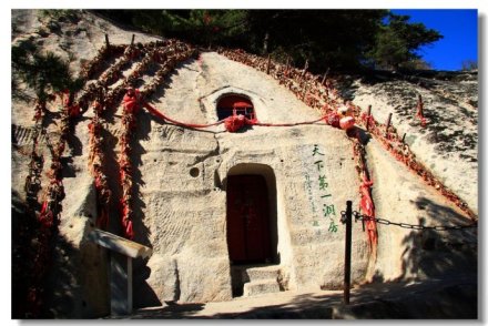 “洞房花燭夜”中“洞房”一詞就源于華山西峰。過去,由于華山路險(xiǎn)難于攀登,一般人望而卻步,這就為早期一些要隱蔽修行的人提供了絕好的去處。而在山上難以找到筑觀蓋廟的材料,隱士們就鑿石洞而居,修行悟道。