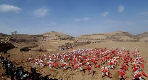 很多人都欣賞過“陜北安塞腰鼓”,在那一望無際的黃土地上,用激情和矯健的身軀舞動著系著紅色飄帶的鼓棒,用陜北人特有的嗓音吼出那一個個燃燒的生命!然而,對安塞腰鼓的起源,又有多少人知道呢?古時為白狄游牧之地,秦漢時屬高奴縣,唐、宋時這里設(shè)堡為防,稱為安塞堡,取“安定邊塞”之意。元蒙哥壬子年(公元1252年)改堡為縣。稱安塞縣。那么,安塞這個軍事要地為何會生出“腰鼓”這么壯美的東西?相傳,在古時,戍邊守塞的士卒,在戰(zhàn)斗時用腰鼓來助威,鼓舞士氣;戰(zhàn)斗勝利后,用它來歡慶。在安塞這片土地上,這種戰(zhàn)前戰(zhàn)后的活動被進一步強化。隨著歲月流逝和時代的變遷,腰鼓漸漸成為一種純粹娛樂的工具,特別是每年春節(jié),陜北的勞動人民用打腰鼓的形式來歡慶豐收,增添節(jié)日歡樂氣氛。這就是安塞腰鼓的由來,F(xiàn)在,每到節(jié)日或慶祝喜事的時候,陜北人民就會用他們這種特有的方式來歡慶!