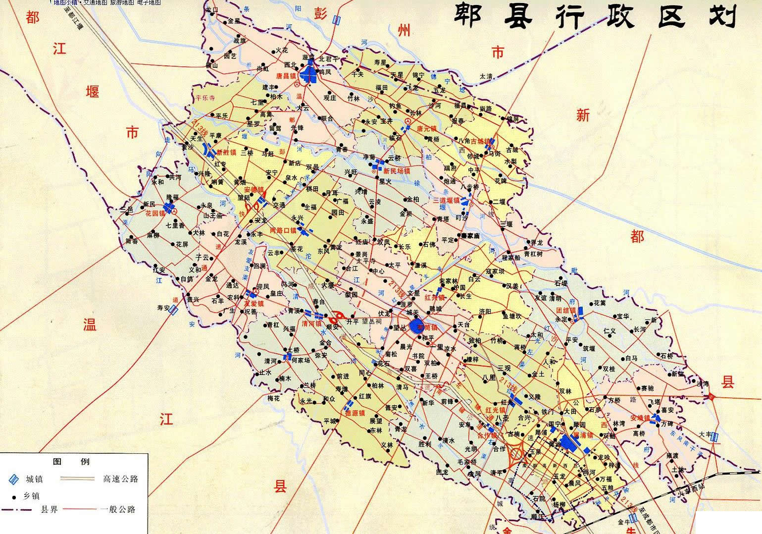 郫縣轄14個(gè)鎮(zhèn):郫筒鎮(zhèn)、犀浦鎮(zhèn)、紅光鎮(zhèn)、安靖鎮(zhèn)、團(tuán)結(jié)鎮(zhèn)、唐昌鎮(zhèn)、三道堰鎮(zhèn)、新民場鎮(zhèn)、花園鎮(zhèn)、安德鎮(zhèn)、唐元鎮(zhèn)、德源鎮(zhèn)、古城鎮(zhèn)、友愛鎮(zhèn)