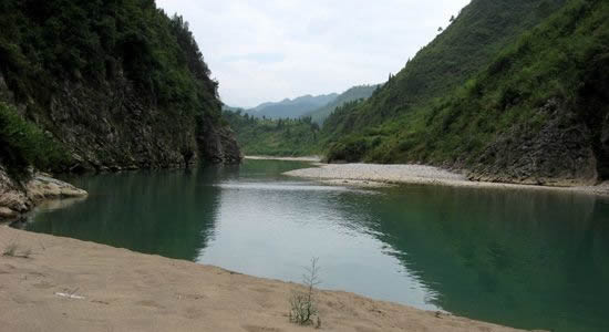 固軍鄉(xiāng)中河上游的沙清河,位于小河口(木臘溪出口)上方。此段河道兩岸兩山所夾形成陡峭峽谷。這里河水清澈,石壁怪狀,風(fēng)景尤佳。雖交通不便,尚待開(kāi)發(fā),但早已取吸了大批附近城鎮(zhèn)的游客前來(lái)旅游觀光。