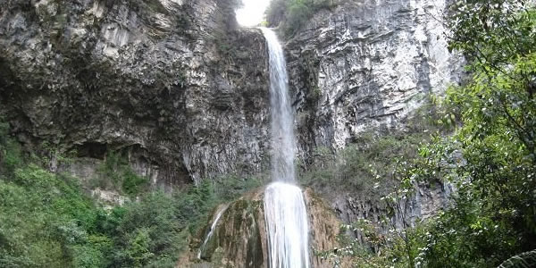 滴水巖,位于固軍鄉(xiāng)火石梁村東南。此地有一小溪為兩山所夾,越往上游山勢(shì)越高,坡度越陡。最終于小溪盡頭處兩山合為絕壁,其頂部成“V”字相交。相交處有一股清泉摔落至下方一堅(jiān)立雞蛋狀的巨石,發(fā)出巨大的聲響。泉水再分為幾綹沿平滑如鏡的石壁滑落至下方深潭!遠(yuǎn)遠(yuǎn)看去,爬滿暗綠青苔的石壁上像是掛著無(wú)數(shù)條白色的絲帶和珠簾!雖景致與沙清河各有千秋,甚至略勝一籌。但因交通較為閉塞,所以知者不多,但來(lái)此觀光過(guò)的游客無(wú)不伸出大拇指一個(gè)勁兒地叫好!