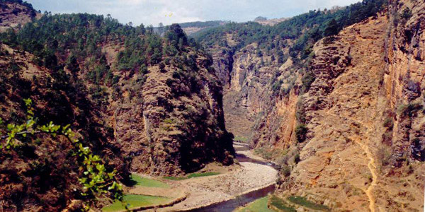 小 特色景色 會(huì)東素有“小三峽”之稱(chēng)的兩岔河位于會(huì)東縣會(huì)東鎮(zhèn)的普發(fā)、秧發(fā)、水塘三村之間。據(jù)史料記載,蜀漢建興三年諸葛亮南征途中,與耶魯王(孟獲)交戰(zhàn)的歷史遺址石馬槽就位于此地。同時(shí),也有關(guān)于元朝末年,張三豐為尋求一民間藥引,跋山涉水前往當(dāng)時(shí)的普雄寨(即現(xiàn)在的普發(fā)村),攀爬于懸崖峭壁之間采集猴漬而傳醫(yī)濟(jì)世的傳說(shuō)。這里依山傍水、山清水秀、險(xiǎn)峰相連,在雄偉壯觀之勢(shì)盡顯其中。特別是兩岸溶洞中的鐘乳石形態(tài)萬(wàn)千、色澤艷麗,凡到過(guò)大小三峽的人都譽(yù)之為“賽三峽”,認(rèn)為這里無(wú)論景色或是雄壯都勝過(guò)三峽。更令廣大游客留連忘返的還是多處溶洞中“仙翁指路”、“倒垂蓮”、“龜石”等形神兼似的鐘乳石。風(fēng)景秀麗的張家灣森林公園同時(shí)也位于該鎮(zhèn)境內(nèi),有車(chē)輛可直接到達(dá)。張家灣森林公園內(nèi)有經(jīng)州、縣宗教事務(wù)管理部門(mén)批準(zhǔn)修建、趙樸初先生題字的寺廟彌陀院,寺內(nèi)供奉的數(shù)尊緬甸漢白玉佛,以及該鎮(zhèn)于2002年經(jīng)多方籌資47萬(wàn)余元新建,距河面100余米、長(zhǎng)78米的兩岔河鋼架索橋,均可稱(chēng)得上涼山之最。自2000年底至今,慕名從云南昆明、成都、攀枝花、西昌等地到“小三峽”、張家森林公園、石馬槽遺址觀光旅游的人就達(dá)3萬(wàn)多人次。 |