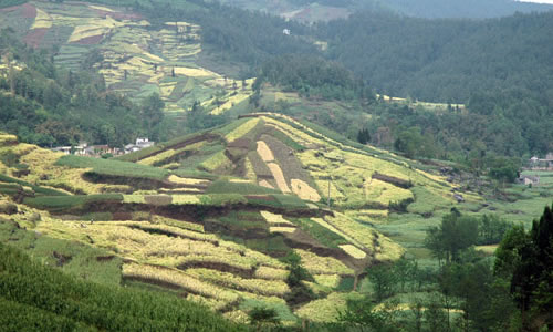 自然地理 含增鎮(zhèn)屬丘陵、高山相間地形; 盤(pán)江(通口河)東岸的吳家后山、乾元山為大山地帶,東南麓為丘陵。最高海拔為2106米,最低海拔540米,地型起伏變化大,地貌大多為喀什特,基巖溶洞陡坎多,巖石裸露地面多, 地質(zhì)多為石灰石風(fēng)化層,境內(nèi)年降雨量700--1200毫米左右,氣溫較低,年平均氣溫15℃,平均日照900時(shí)左右,林木生長(zhǎng)茂密,屬?lài)?guó)家天然林天保護(hù)區(qū)。2000年底,該鎮(zhèn)有耕地面積6214.8畝, 其中田1791畝,地4423.8畝,天然林保護(hù)面積73130畝,森林覆蓋率55%,糧食作物主要以玉米、水稻、小麥為主, 油料作物以油菜、花生為主,經(jīng)濟(jì)作物主要有生姜、大蒜、海椒、薇菜等。養(yǎng)殖業(yè)以養(yǎng)豬、羊、牛為主,小家禽有雞、鴨、鵝、兔等。 自然條件 “四面青山環(huán)繞,生態(tài)純美;冬無(wú)嚴(yán)寒夏無(wú)酷暑是天然養(yǎng)生地”凡到過(guò)江油含增鎮(zhèn)的人,都會(huì)這么評(píng)價(jià)山城含增。這里清新宜人的環(huán)境的確令人稱(chēng)道,尤以綠色植物景觀墻吸引人。這些數(shù)量眾多、規(guī)模宏大的景觀墻,如一道道綠色屏風(fēng),把含增裝扮得清幽無(wú)比。1950年代前,含增鎮(zhèn)跟江油其它鄉(xiāng)鎮(zhèn)一樣,并不為外界所知。國(guó)家實(shí)施“三線建設(shè)”后,長(zhǎng)城特殊鋼公司三分廠落戶這里,含增便熱鬧起來(lái),也現(xiàn)代起來(lái),進(jìn)而成為一座小城。與其它地方的“三線建設(shè)”不一樣的是,這里的職工生活區(qū)與廠區(qū)因大山的阻隔,相距較遠(yuǎn),沒(méi)有連在一起。含增便跟噪音、粉塵和一些有害化學(xué)物質(zhì)絕了緣,保持了清新、恬淡、自然的個(gè)性。過(guò)去,含增在城鎮(zhèn)建設(shè)上不太注重環(huán)境綠化,直到1980年代后,才有了明顯改觀。據(jù)三分廠含增街道辦主任張善進(jìn)介紹,這是由于生活垃圾沒(méi)有及時(shí)處理,造成了環(huán)境污染所致。在環(huán)境美化上,含增人是動(dòng)了腦筋的。由于含增地處山區(qū),對(duì)環(huán)境的整治便不能按常規(guī)思維進(jìn)行,他們采取依山就勢(shì)、見(jiàn)縫插綠、因墻添綠的方式全面推進(jìn)。在盤(pán)江賓館的街對(duì)面,有一道高5米、長(zhǎng)50米的景觀墻。山坡上修建的是供應(yīng)全鎮(zhèn)一萬(wàn)多人使用的自來(lái)水塔。為了綠化美化這塊巨大墻體,精明的含增人在墻的頂部栽種了迎春花和常春藤。一年四季,季季景色各不相同。早春,迎春怒放,黃花朵朵,向人們傳遞著春的氣息;夏天,常春藤碧綠如洗,枝蔓從墻頭攀爬下來(lái),恰似一道綠色瀑布從天而降;秋冬季節(jié),藤葉紅黃相間,猶如一幅五彩繽紛的國(guó)畫(huà)。迎賓路旁,有長(zhǎng)百米的建筑填方地段。含增人匠心獨(dú)運(yùn),設(shè)計(jì)了兩層仿古觀景臺(tái),路邊建起了仿古的樓臺(tái)亭閣,供人們休閑娛樂(lè)。整個(gè)建筑全用植物造景,給人以步移景換的感覺(jué)。樓臺(tái)邊有古樹(shù)環(huán)繞,亭子上有紫藤攀爬,水榭邊有杜鵑依偎,而兩層觀景臺(tái)前,種有碧綠的倒槐和塔柏;后墻上,攀爬能力極強(qiáng)的爬山虎正極力擴(kuò)張地盤(pán)。從遠(yuǎn)處看,兩道后墻如兩塊綠色掛毯貼在墻上。含增街道辦后的山坡上,建設(shè)者還巧妙地利用盤(pán)江盛產(chǎn)的丹景石造景,上刻李白的《訪戴天山道士不遇》等詩(shī)篇,四周栽上月季、黃楊等綠色植物,一股清新的文化氣息撲面而來(lái)。在含增,很難發(fā)現(xiàn)兩塊形狀相似、栽種植物一致的綠色墻體。這又是含增人的精明之處,他們除用藤本植物和灌木作為遮掩墻體的綠色植物外,還廣泛利用喬木巨大的遮陰功能,掩飾墻體。從生活區(qū)通往廠區(qū)的盤(pán)江路兩邊,茂盛、壯實(shí)的夾竹桃形成了一條綠色通道。白的、粉紅的花朵迎風(fēng)招展,有如成群的處子在舞蹈。在迎春路邊,成排的法國(guó)冬青枝繁葉茂,連綿不絕,恰好擋住了裸露的山巖。“經(jīng)過(guò)20多年不懈努力,綠色意識(shí)早已深入含增人的心里。”張善進(jìn)自豪地說(shuō)。 經(jīng)濟(jì)發(fā)展 含增鎮(zhèn)工業(yè)經(jīng)濟(jì)發(fā)展條件優(yōu)越,態(tài)勢(shì)良好。 2004年,全鎮(zhèn)國(guó)民生產(chǎn)總值2 100萬(wàn)元,其中鄉(xiāng)鎮(zhèn)企業(yè)總值 17589萬(wàn)元,工業(yè)總產(chǎn)值12680萬(wàn)元,財(cái)政收入230萬(wàn)元,農(nóng)民人均純收入3255元,完成招商引資1115萬(wàn)元。由香港瑞然集團(tuán)天安石材公司對(duì)石灰石礦進(jìn)行開(kāi)采深加工,制成裝飾墻體磚、地板磚遠(yuǎn)銷(xiāo)日本、美國(guó)。 含增鎮(zhèn)旅游資源十分豐富,鎮(zhèn)政府確立了將旅游業(yè)作為支柱產(chǎn)業(yè)的發(fā)展戰(zhàn)略,積極為旅游企業(yè)創(chuàng)造良好的經(jīng)營(yíng)空間,特別是全力支持白龍宮、香水湖、天音巖重點(diǎn)景區(qū)開(kāi)發(fā)和建設(shè),大力促進(jìn)省級(jí)風(fēng)景名勝區(qū)乾元山道路的改造和接待能力的提高。加強(qiáng)旅游市場(chǎng)管理,提高服務(wù)質(zhì)量,樹(shù)立良好的對(duì)外形象鎮(zhèn)政府還積極發(fā)展交通運(yùn)輸、餐飲、娛樂(lè)等行業(yè),促進(jìn)第三產(chǎn)業(yè)發(fā)展。 含增鎮(zhèn)農(nóng)業(yè)發(fā)展立足山區(qū)資源優(yōu)勢(shì),大力發(fā)展