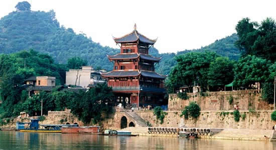 周子古鎮(zhèn):被譽(yù)為嘉陵江上最后的碼頭古鎮(zhèn)。長約1000米的百年古街,除有首尾相連、錯落有致的3000余套清代民居院落外,還保存有完好的濂溪祠、萬壽宮、武圣宮、畫江樓、沿仙觀等古建筑遺址。周子古鎮(zhèn)興于唐宋年間,千年積淀,蘊(yùn)育了厚重獨(dú)特的碼頭古鎮(zhèn)文化。“水、形、文、史”在古鎮(zhèn)和諧交融,渾然天成。“水”是古鎮(zhèn)的“靈魂”,嘉陵江如美人玉帶,飄然而過,賦予古鎮(zhèn)神韻;“形”是古鎮(zhèn)的“肌體”,古碼頭、古民居、古商鋪、古茶社、古客棧依山就勢,鋪陳開來;“文”是古鎮(zhèn)的“氣質(zhì)”。古鎮(zhèn)文化盛極一時,孕育了一代大文豪司馬相如,留下了千古絕唱《鳳求凰》;吸引了奉御命作“錦繡嘉陵三百里”的“畫圣”吳道子“粉本在茲”;感染了宋明理學(xué)開山鼻祖周敦頤,開壇設(shè)講,《愛蓮說》的瑯瑯誦讀聲依稀可聞。