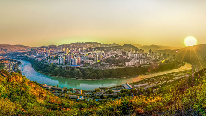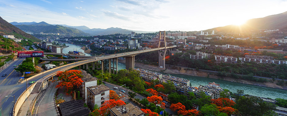 攀枝花市,位于中國西南川滇交界部,金沙江與雅礱江交匯于此。東、北面與四川省涼山彝族自治州的會(huì)理、德昌、鹽源3縣接壤,西、南面與云南省的寧蒗、華坪、永仁3縣交界,總面積7440平方千米;北距成都749千米,南接昆明351千米,是四川省通往華南、東南亞沿邊、沿海口岸的最近點(diǎn)。