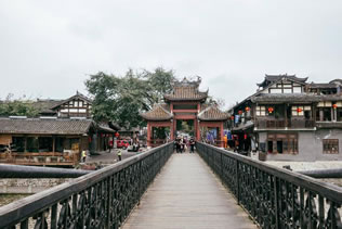 元通古鎮(zhèn)三面環(huán)水,一面環(huán)山。千百年來,滾滾江水滋潤著這方神圣的土地。江岸之外良田萬頃,古鎮(zhèn)街頭院落森森。大小不一的街巷保存完好,木板房、青瓦房相連成片,遺存至今的古老民居,泱泱然散發(fā)著濃濃的古韻,挪動(dòng)著每一寸腳步,推開每一扇窗欞,似乎都闖開了歷史的大門自己也便,情不自禁、身不由己地也便走進(jìn)了過去,走進(jìn)了歷史。走進(jìn)元通深處,一幢幢民房,一條條街巷,摸著這歷史的邊邊角角,終于找到了心靈的歸宿。元通古鎮(zhèn)依山傍水一路修來,鎮(zhèn)上的主要建筑都沿文井江拔地而起,上千戶人家臨河而居,水是他們的寄托,水是他們的立命之本,水與這里的人結(jié)下了不解之緣。所以,生活在這里的居民,家家的后院里都有石階可以下到河邊。古時(shí),鎮(zhèn)上的人出行大都靠水遠(yuǎn),家家戶戶都順著后門的石階進(jìn)進(jìn)出出,那情形有如走進(jìn)了以一處江南水鄉(xiāng)。在江河之上,一道鐵橋?qū)⒐沛?zhèn)與外灘緊緊地連在一起,時(shí)疏時(shí)密的鄉(xiāng)民在橋上來來去去,如履平地。這座橋名叫匯江橋,全長164米、寬2、5米、高6米,造型古雅,除兩端橋樓,中間幾座帶歇山項(xiàng)的涼亭在寬闊的江面上頗顯風(fēng)致,橋下是文錦江,味江和泊河江在元通的匯流之處,流床寬闊,水流湍急,極為有利于水上航運(yùn)。據(jù)方志載,古運(yùn)通航,元通堪以重任,從此起航,須經(jīng)白馬渡,陳家渡、方渡,再順著崇州境內(nèi)最大最長的河流――西河到新津龍王渡,然后進(jìn)入岷江,這段30余公里的航道乃為崇山十分重要水上交通。正是通過這條航道,元通境內(nèi)的土特產(chǎn),才得以遠(yuǎn)銷樂山、宜賓、瀘州等地,同時(shí)他們也從這條道上獲得了生活中的日用百貨,因元通是物流的集散地。同時(shí),外地客商也多聚匯于此,于是元通市井繁榮,生意興隆,到清咸豐年間終成大鎮(zhèn)。匯江橋雖造型古雅,但是一座現(xiàn)代橋,其修建年代竟為1986年,據(jù)載,最早的鐵索橋建于清光緒年間,長達(dá)130余米,氣勢宏大壯觀,因晚清末年清明會(huì)時(shí)人多坍塌,其后人元通人又募資再建,造型如同今日,可惜毀于“文革”風(fēng)暴,視橋?yàn)榍楦屑耐械脑ㄈ,出于對歷史的情感顧念,再次集資修建了索橋。