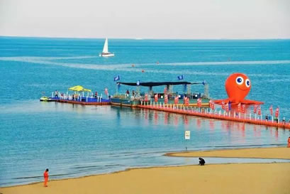 景區(qū)還將增添激情水上飛碟、快艇漂移、水上沙發(fā)、水上UU船、帆船、海上滑梯、海上蹺蹺板等數(shù)十項大型游樂設(shè)施,讓這里真正成為海上“迪士尼”。作為配套設(shè)施,在人工海灘西側(cè)修建濱海路,全長1.3公里,道路寬24米,為景區(qū)內(nèi)步行觀景道路,道路兩側(cè)綠化面積約6700平方米。綠化廣場總面積12萬平方米,景區(qū)停車場總面積約4700平方米。景區(qū)設(shè)置為沙灘親水區(qū)、沙灘游泳休閑區(qū)、水上運動休閑中心和水上休閑娛樂區(qū)。其中,位于沙灘游泳休閑區(qū)已經(jīng)建成的海景會所,是目前國內(nèi)北方最大的單體木結(jié)構(gòu)海景酒店會所,設(shè)有餐飲、住宿、淋浴、商務(wù)、娛樂等設(shè)施,并提供有地道的天津狗不理包子。另外,會所周邊正在建設(shè)游艇會所、五星級酒店、運動廣場、低密度住宅、高爾夫球場等設(shè)施。配套服務(wù)設(shè)施將逐步完善。