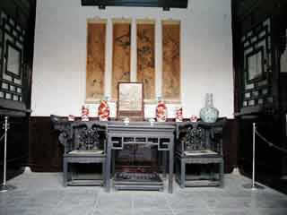 在甬道西側(cè),現(xiàn)辟為"石府復(fù)原陳列"區(qū)。這是當(dāng)年石家會(huì)晤賓客、娛樂消閑、誦經(jīng)禮佛的場(chǎng)所。裝飾陳設(shè)豪華。有四扇木雕花屏,被稱為國(guó)寶,當(dāng)時(shí)工價(jià)1200兩白銀,一朵花、一片葉就合6兩白銀。室內(nèi)設(shè)備講究。有一間客廳地下有暖風(fēng)通道,冬天在墻外地爐里每天燒木炭200斤,向室內(nèi)地下供熱。