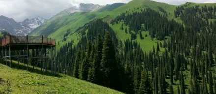那拉提國家森林公園位于河谷線路的最東站,是集觀光、度假、娛樂、療養(yǎng)、健身、探險(xiǎn)、科學(xué)考察等多功能為一體的旅游勝地。森林覆蓋面積10萬畝,海拔1600—2800米,年平均氣溫不足20攝氏度,年降水量為800—1200毫米,空氣新鮮,含氧量高,堪稱為“天然的氧吧”。層次垂直分布的植物景觀,構(gòu)成景色美麗的天然植物園,被譽(yù)為植物的活化石展覽館、中草藥野生蔬菜基因庫,公園內(nèi)樹種主要以國家特級保護(hù)植物雪嶺云杉為主,以生態(tài)養(yǎng)生、休閑度假、森林養(yǎng)生為主的高端休閑康養(yǎng)區(qū)。