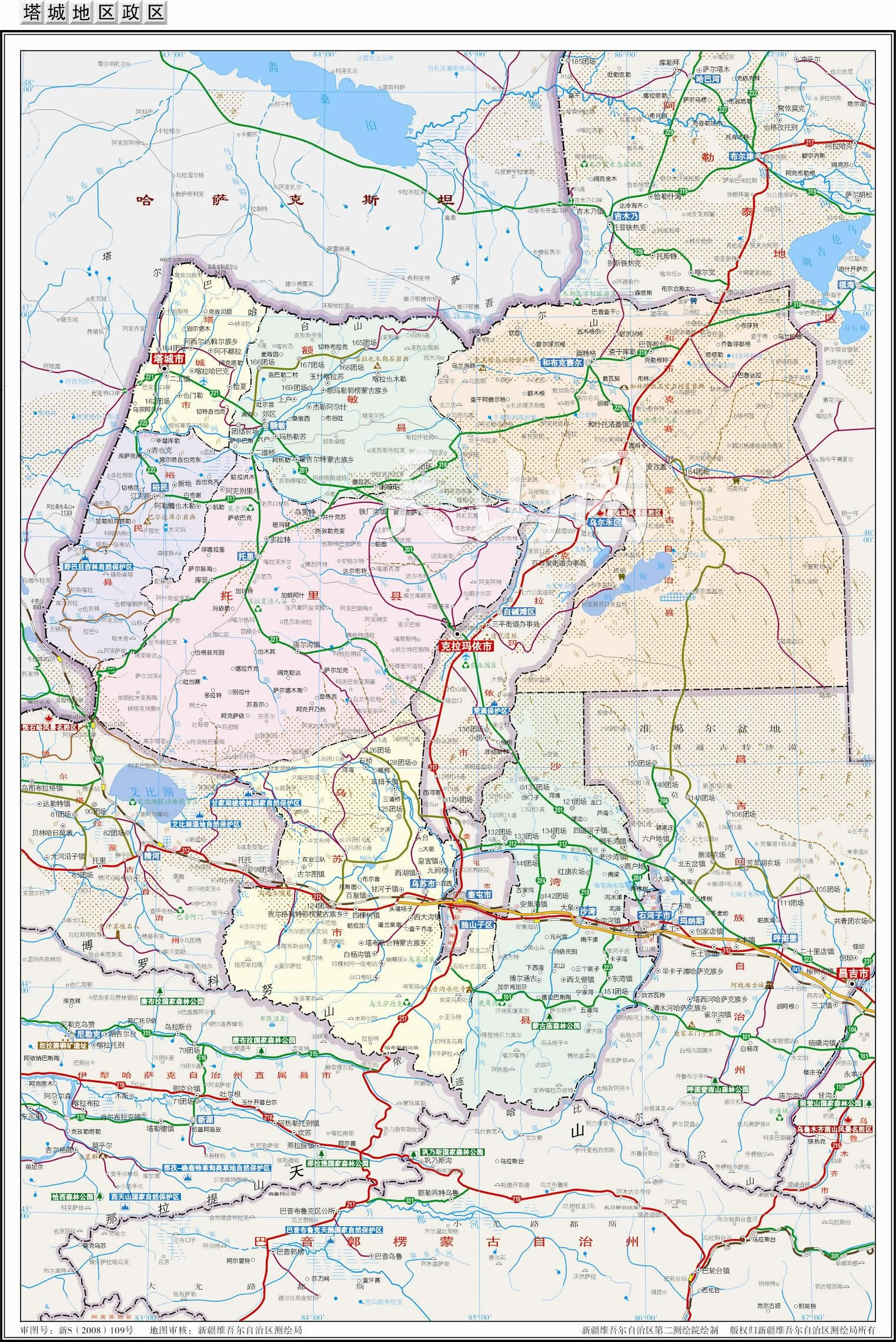 塔城地區(qū)轄3個縣級市、3個縣、1個自治縣: