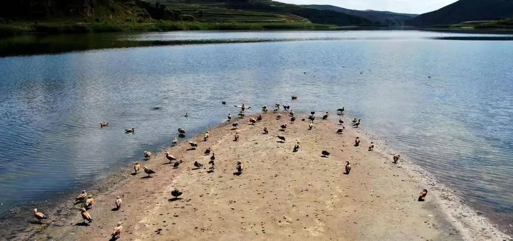 深秋時分,黨家岔堰塞湖旁高高的山峁上北風凜冽,寧夏固原市西吉縣黨家岔濕地自然保護區(qū)管理人員馬世學站在上面遠眺,黨家岔的水面像一面巨大的鏡子,將上空的烏云和飛鳥全部“裝”了進去。