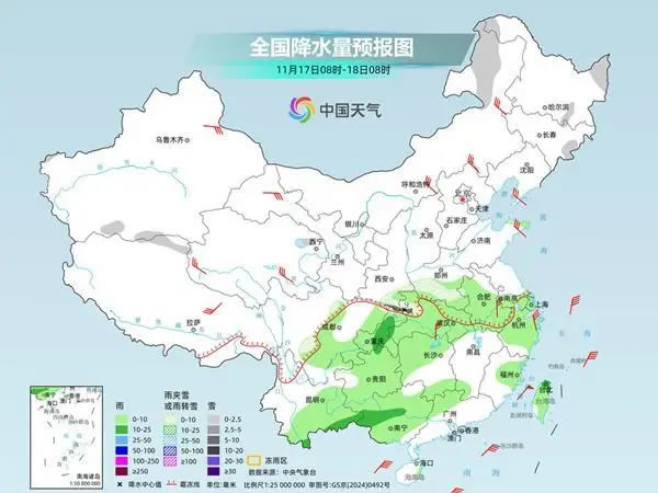 今明兩天(11月17日至18日),寒潮繼續(xù)給我國中東部帶來大風(fēng)、降溫天氣,氣溫將自北向南陸續(xù)跌入低谷,并且會大面積創(chuàng)下半年來新低。與此同時,寒潮帶來的降雪今天將逐漸減弱結(jié)束,南方陰雨有所增多,明天起全國大部將轉(zhuǎn)為晴朗干燥的天氣格局。