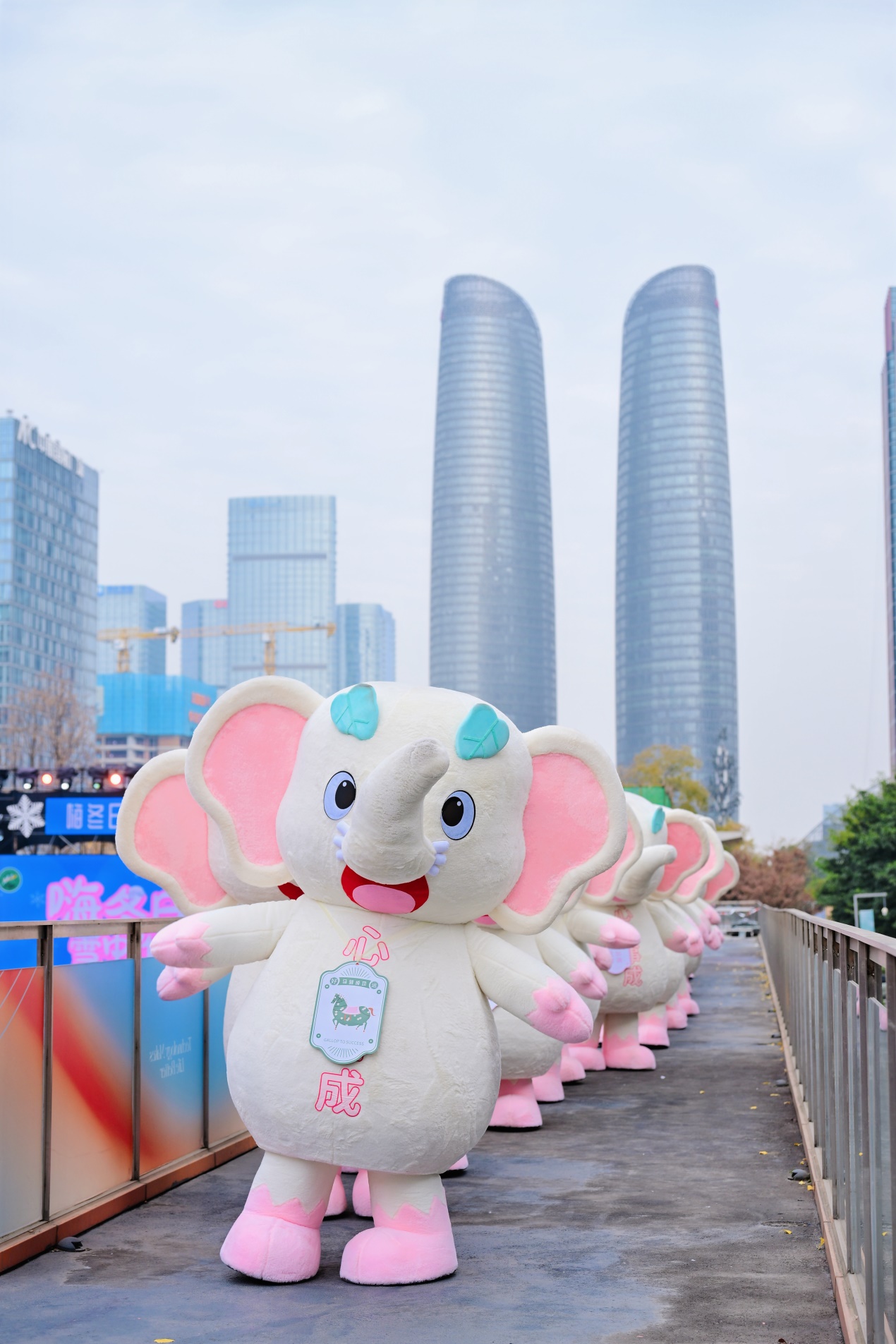 此次登陸成都的“福象巡游”,堪稱冬日文旅盛宴的點睛之筆,其文化內(nèi)核源自峨眉山極具代表性的祥瑞符號——六牙白象。圣潔白象煥新蛻變萌趣福象六六,依托“象”與“祥”的諧音之妙,圣潔莊重的六牙白象幻化身為萌態(tài)十足的小福象,既延續(xù)了白象承載的吉祥庇佑之意,更將“峨眉耍雪・心象事成”的內(nèi)涵詮釋得淋漓盡致,成為冬日里最治愈的祥瑞福氣天團。“耍雪”是峨眉山冬季獨有的極致浪漫,金頂皚皚白雪的圣潔壯闊、林間戲雪的肆意歡騰,是鐫刻在每個人心中的冬日終極向往;“心象事成”則暗藏滿滿期許,飽含人們對冬日美好景致的熱切期盼,以祥瑞之氣傳遞祝福,寓意奔赴峨眉耍雪尋福之人,皆能心愿順?biāo)、萬事勝意。27只小福象精準(zhǔn)復(fù)刻六牙白象的靈動神韻,從仙氣繚繞的峨眉仙山走進煙火繁盛的都市街巷,讓仙山的靜謐禪意與都市的熱鬧活力完美交融。