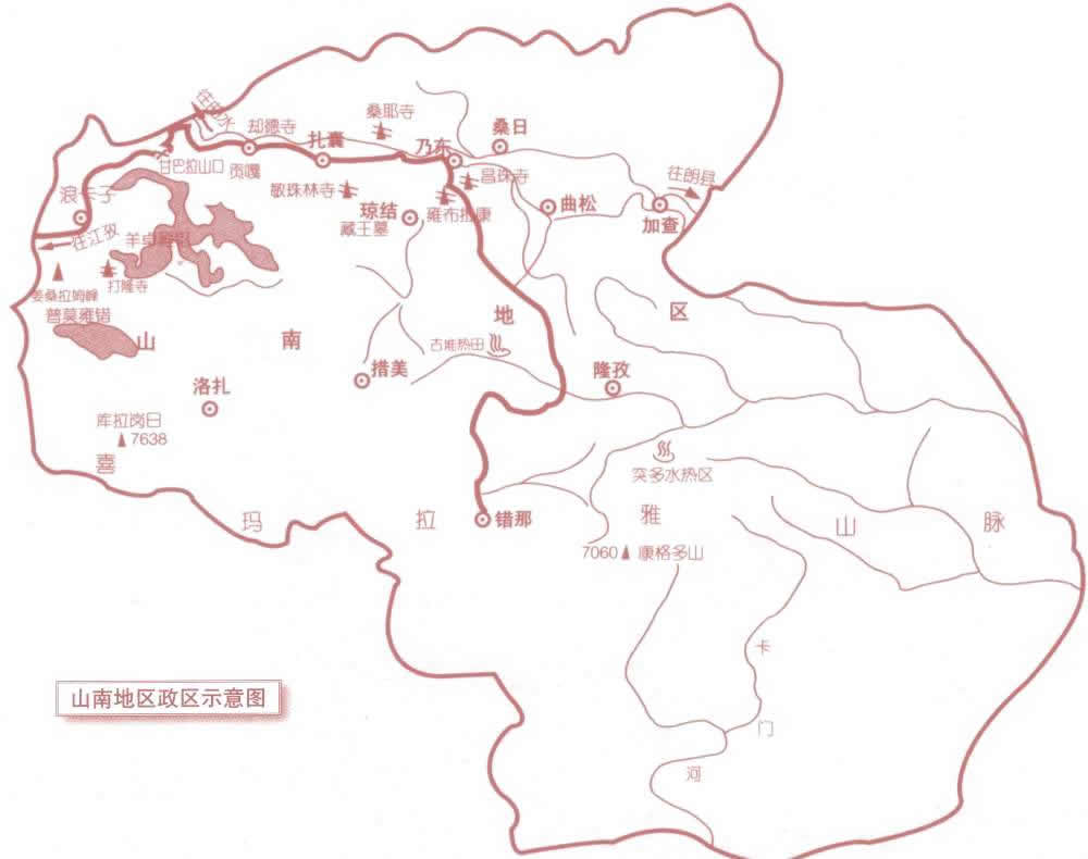 洛扎縣 面積5022.73平方千米,人口19865,政府駐洛扎鎮(zhèn),下轄2個(gè)鎮(zhèn)、5個(gè)鄉(xiāng)