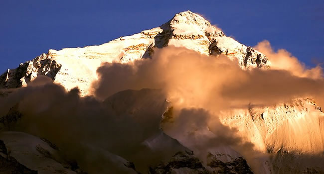 珠穆朗瑪峰是世界最高大的山系喜馬拉雅山的主峰,海拔8,844.43米,為世界第一高峰。珠穆朗瑪為藏語(yǔ)的音譯,意為“女神第三”。山體呈金字塔狀,山上冰川面積達(dá)1萬(wàn)平方公里,最長(zhǎng)之冰川達(dá)26公里。山峰上部終年為冰雪覆蓋,地形陡峭高峻。是世界登山運(yùn)動(dòng)矚目和向往的地方。山間有孔雀、長(zhǎng)臂猿、藏熊、雪豹、藏羚等珍禽奇獸及多種礦藏。