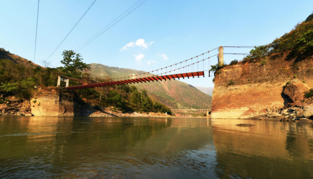 惠通橋位于施甸縣與龍陵縣分界的怒江上,位于云南省保山市龍陵縣臘勐鎮(zhèn)臘勐社區(qū),吊橋全長205米,跨徑190米,由17根巨型德國鋼纜飛架而成,最大負重7噸。 惠通橋,始建于明朝末年,初為鐵鏈索橋,位于滇緬公路(中國段)六百公里處,滇緬公路的咽喉。民國二十五年,新加坡華僑梁金山捐資,將舊橋改建為新式柔型鋼索大吊橋。吊橋全長205米,跨徑190米,由17根巨型德國鋼纜飛架而成,最大負重7噸。至1977年新建鋼骨水泥大橋落成通車,吊橋開始廢棄不用。