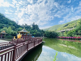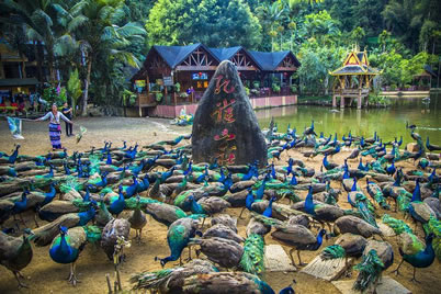 公園占地面積26310畝,園內(nèi)森林覆蓋率為98.6%,是目前北回歸線以南保存最完好的一片原始森林,它的自然優(yōu)勢融匯了原始森林神奇的自然風(fēng)光和濃郁的民俗風(fēng)情,集中突出體現(xiàn)了"熱帶溝谷雨林"、"以孔雀文化為主的野生動物展示"、"以哈尼族-愛尼人為主的民俗風(fēng)情展示"三大主題特色,同時配備有按四星級打造集客房、餐飲、會務(wù)、娛樂為一體的孔雀山莊度假村。"勐巴拉納西"是一個充滿美好、理想和神奇的地方,旖旎的自然風(fēng)光、翡翠般的森林、絢麗多姿的民族風(fēng)情,膠園、茶園、瀾滄江。