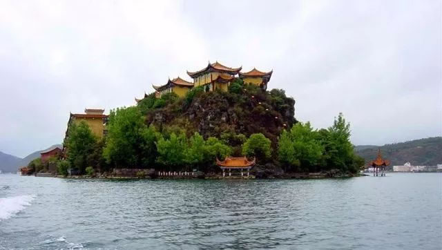 孤山,原名瀛海山,位于距江川城區(qū)約17公里的撫仙湖江川水域之中。明代以前瀛海山傍有一小島,兩島之間有一鐵橋相通。明末一夕地震,小島及虹飲橋沉沒,唯瀛海山屹然獨(dú)存,孤山由此得名。孤山成于宋,盛于明,曾建有八殿五閣三亭一堂一庵一塔。