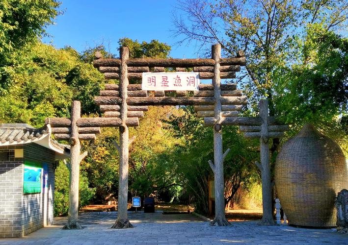 明星魚洞,百余個(gè)魚洞依石壁之下的泉眼分布在近千余米長的撫仙湖沿岸。每年的3-9月,是撫仙湖特產(chǎn)抗浪魚捕撈的主要季節(jié)。當(dāng)?shù)貪O民用木制的水車從綠樹掩映的石洞泉眼里把泉水車出,經(jīng)過溝道流入湖內(nèi),泉水與湖水的溫差和流速恰好迎合了爭強(qiáng)好勝、喜歡清水的抗浪魚的生活習(xí)性,魚兒便群集搶水而上,鉆人了漁民們預(yù)先放置在流水溝道里的竹籠而被捕獲、這種捕魚方法歷代沿襲,古老而獨(dú)特,人們稱之為“車水捕魚”。