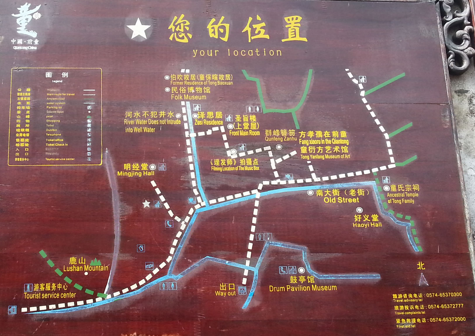 村落按“回”字九宮八卦式布局。童姓祖先按照八卦原理,把白溪水引進(jìn)村莊,潺潺溪水挨戶環(huán)流,人人可在溪水中洗菜凈衣,家家連流水小橋,戶戶通卵石坦途。青藤白墻黑瓦,石頭鏤花窗戶,雕梁畫棟門樓,蒼涼中顯現(xiàn)出昔日曾經(jīng)的繁華。