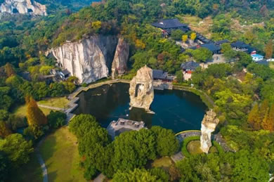 三國時期,這里曾是一處采石場,經(jīng)歷代能工巧匠的不斷開鑿,鬼斧神工般地造就了姿態(tài)各異的石宕、石洞和石壁。千百年來,隨著宗教的介入,文人名流的渲染及后人的開發(fā),現(xiàn)已形成天工大佛、爐柱晴煙、七星巖、八卦臺、文昌閣、蠶花洞、蓮花聽音等景觀。