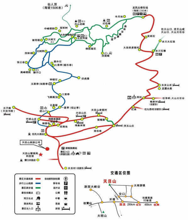 4、天目山景區(qū)內(nèi)須換乘景區(qū)觀光車,上下山30元/人,步行上山的游客,下山也可在龍鳳尖停車場換乘觀光車下山,15元/人。