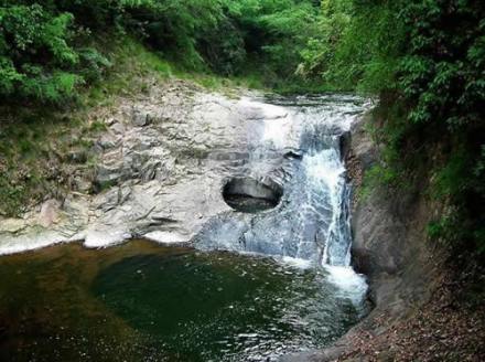 瀑布中間的水潭頗為奇特,呈鵝蛋形,恰如仙女洗澡的浴盆。